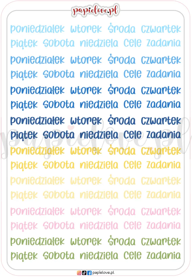 72 naklejki nazwami dni tygodnia z serii z niezapominajkami.
