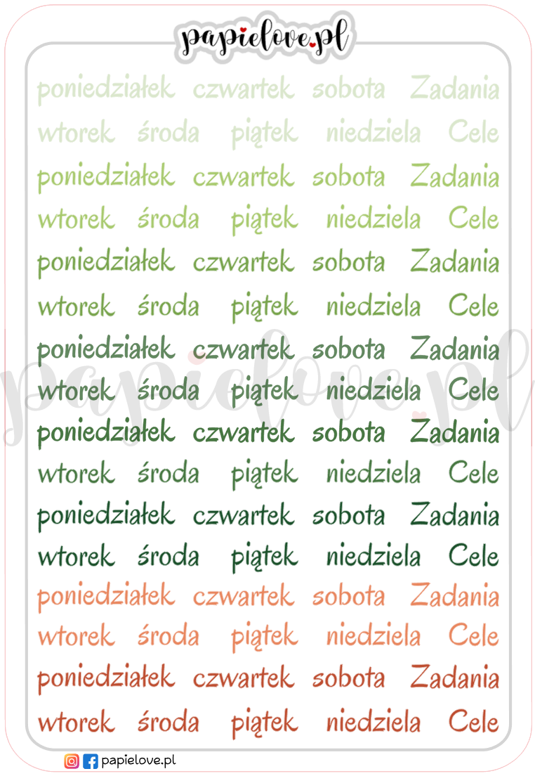 72 naklejki z dniami tygodnia, celami i zadaniami