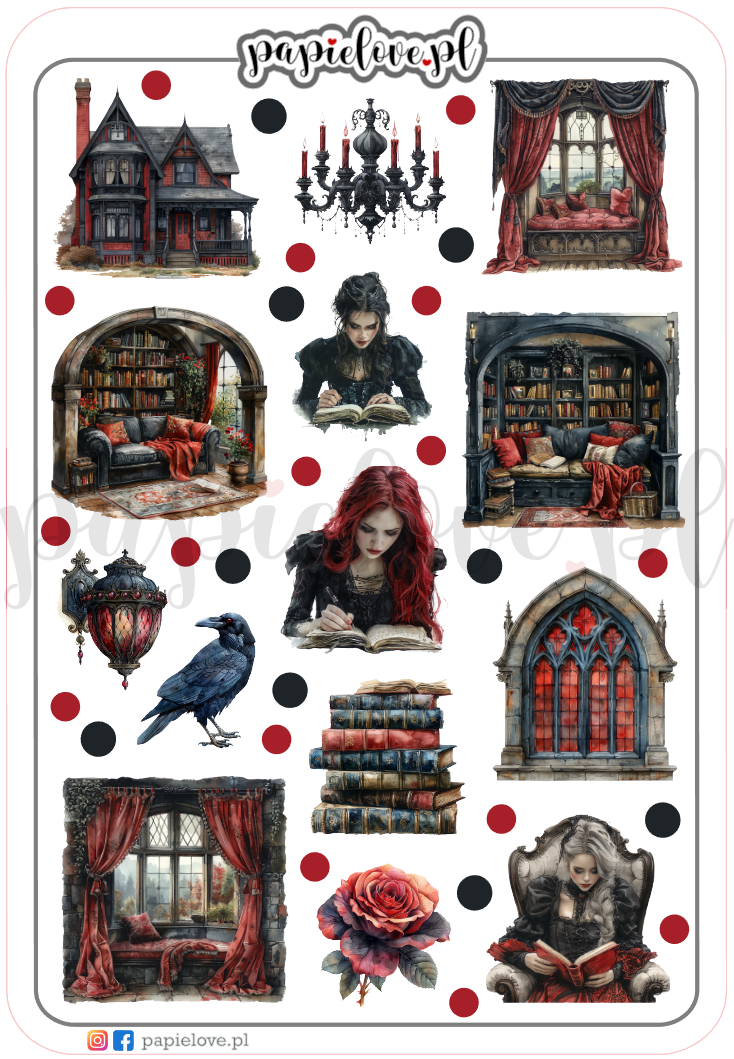 14 naklejek w gotyckim stylu oraz kropeczki