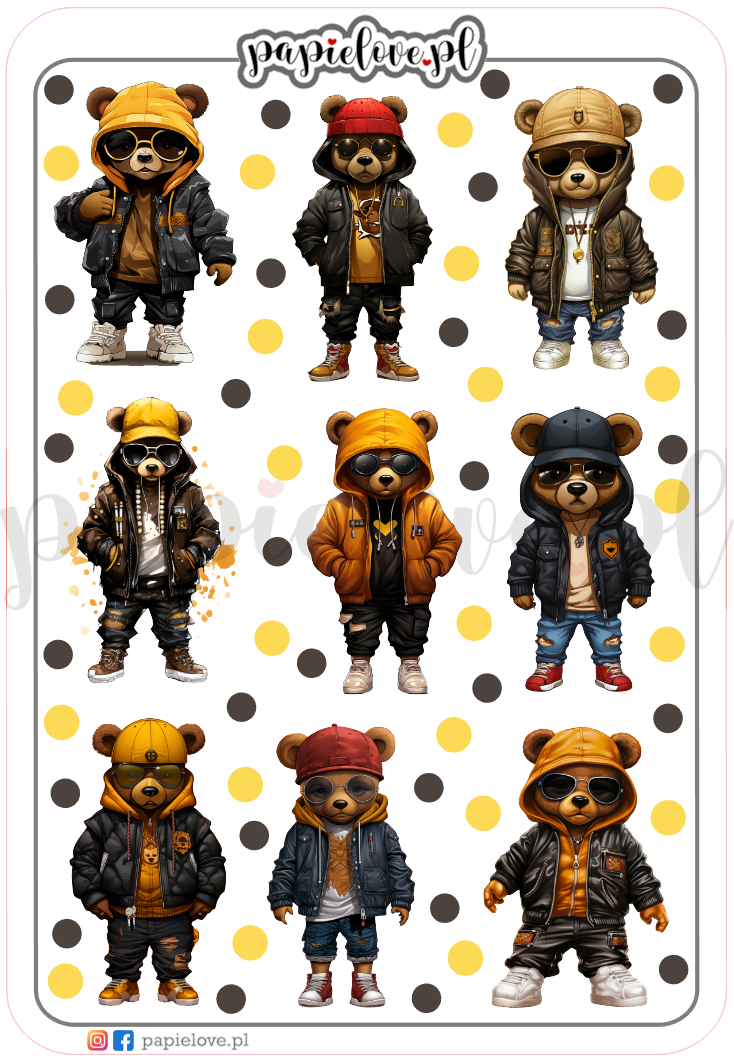 Ozdób swoje projekty hip-hopowym stylem - nasz arkusz naklejek z misiem - fanem hip-hopu to idealny sposób na wyrażenie miłości do tego stylu muzyki.