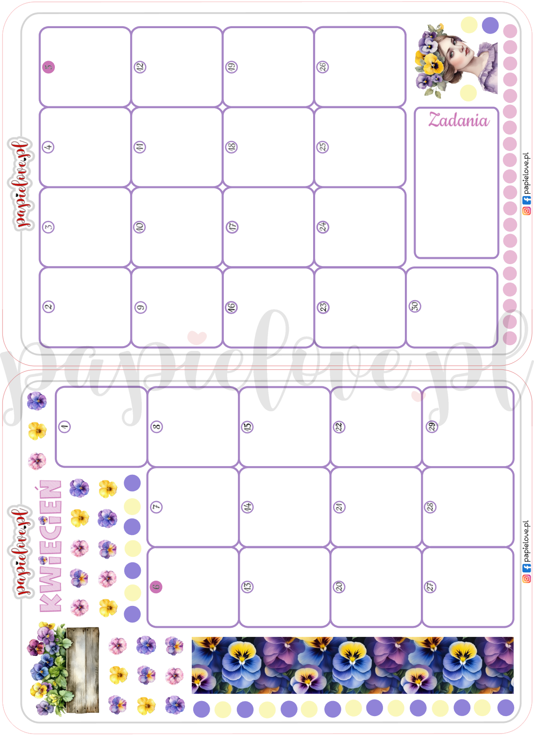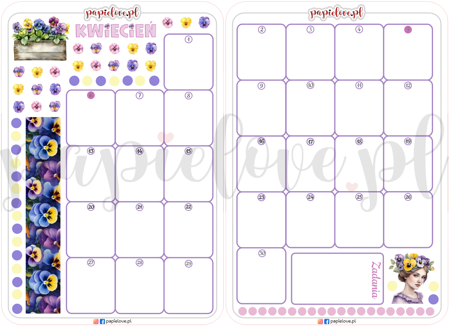 Naklejki - Kalendarz na kwiecień podwójny - Bratki 2026