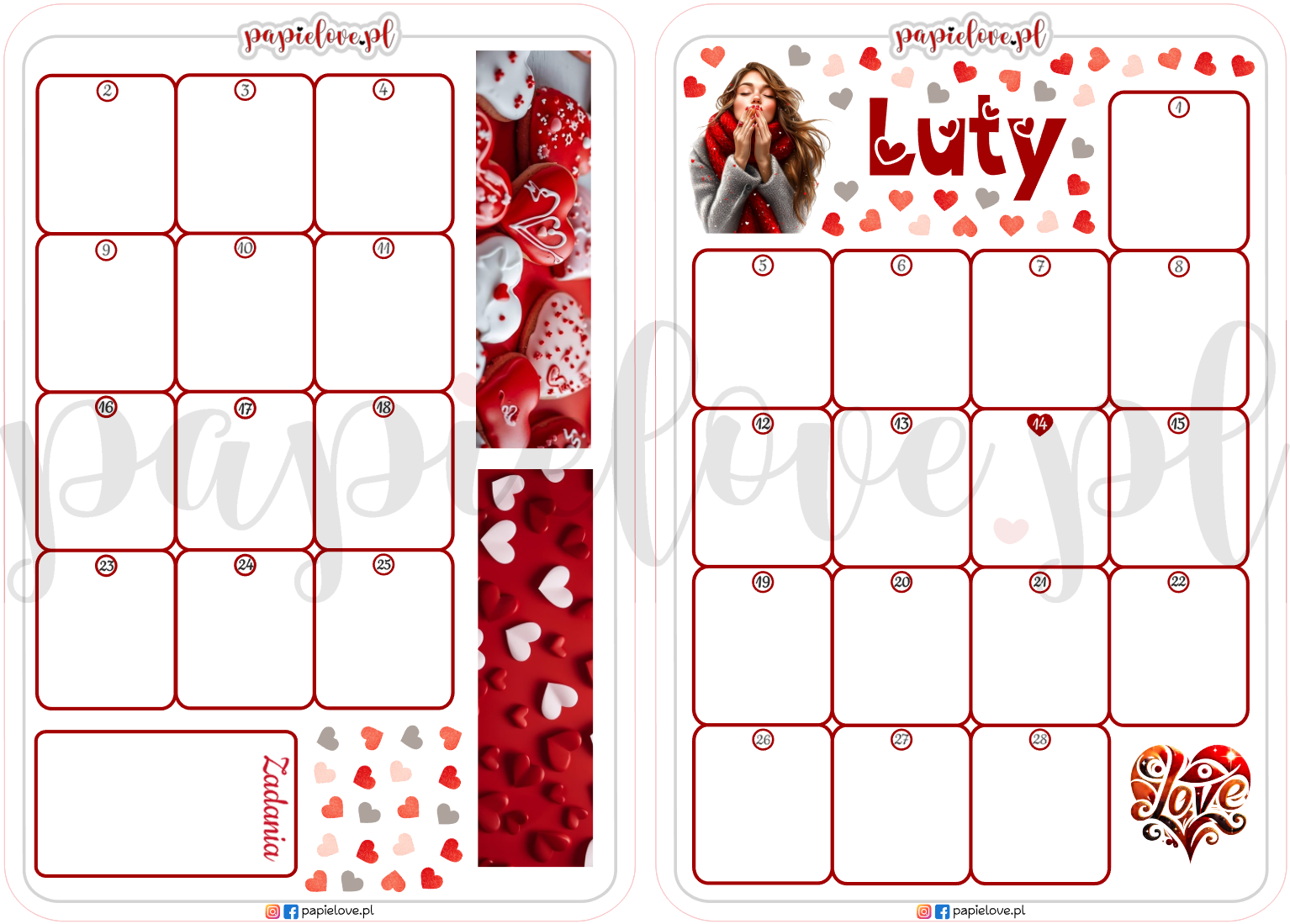 nazwę miesiąca oraz naklejki ozdobne i serduszka do ozdobienia obu stron.