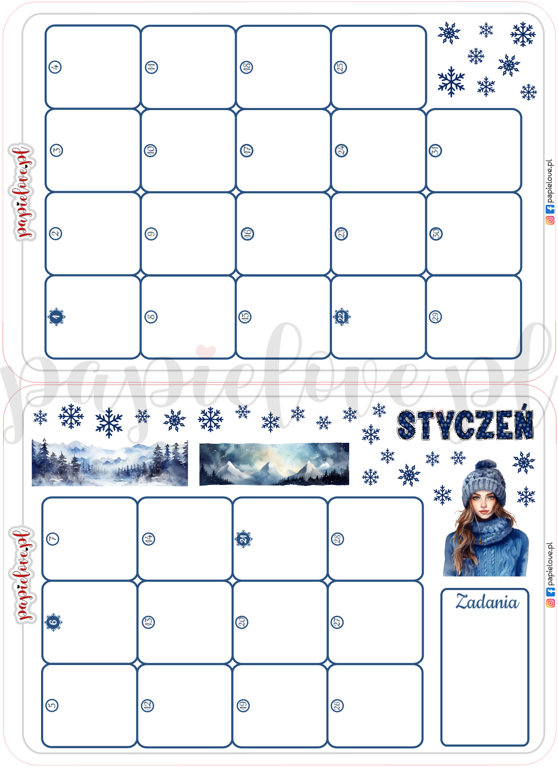 Naklejki - Kalendarz podwójny na styczeń 2026