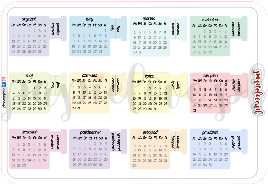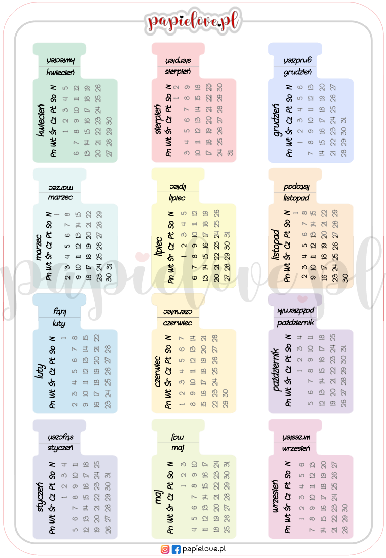 Naklejki - Kalendarze ze znacznikami kolor 2026