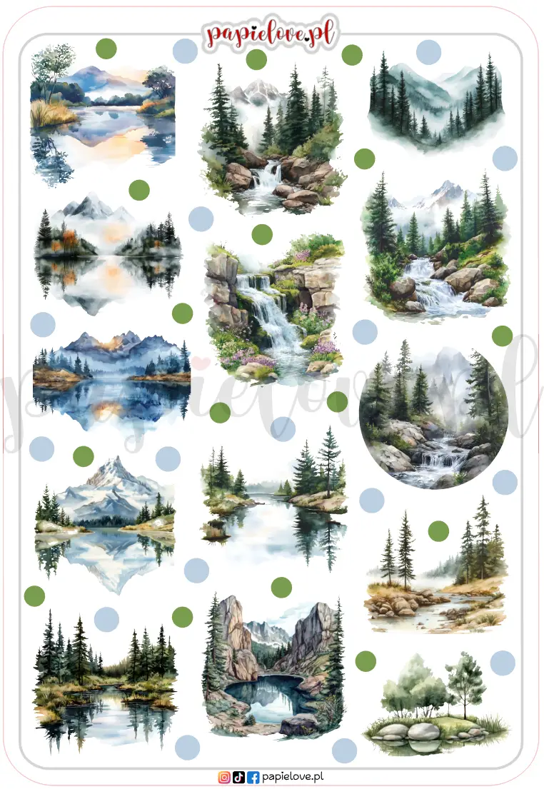 Arkusz naklejek z krajobrazami to kolekcja pełna natury i inspirujących widoków. Idealne do bullet journala, plannerów i dekoracji. Różnorodne pejzaże dodadzą uroku i wyjątkowego charakteru każdej stronie.