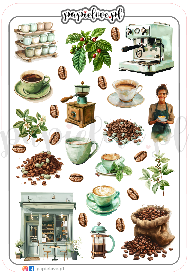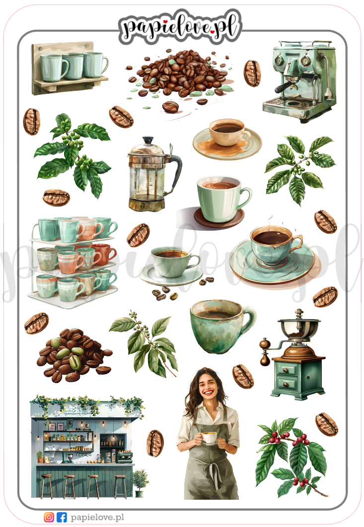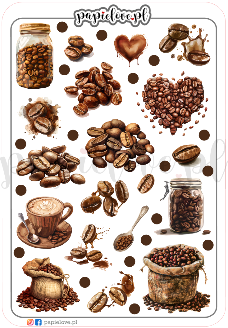 Od klasycznych filiżanek z małą czarną po ziarna kawy - nasze naklejki są idealnym dodatkiem do ozdabiania i planowania.