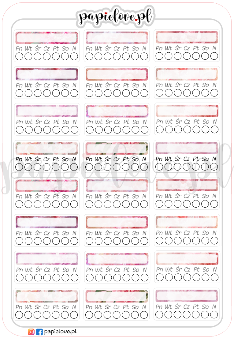 Tracker to narzędzie, dzięki któremu możesz śledzić swoje postępy w rozwijaniu pozytywnych nawyków, zauważać wzorce w swoim zachowaniu, motywować się do kontynuowania praktyk oraz identyfikować obszary do poprawy. Jest to również przydatne narzędzie do budowania dyscypliny i regularności w wykonywaniu codziennych czynności. Nasz arkusz naklejek pozwala samodzielnie wybrać i wpisać w odpowiednie pola nawyki i zwyczaje, które chcesz monitorować. Każdego dnia wypełniaj puste pola znaczkami lub zamalowuj kolorowymi kredkami. Systematyczność jest bardzo ważna.