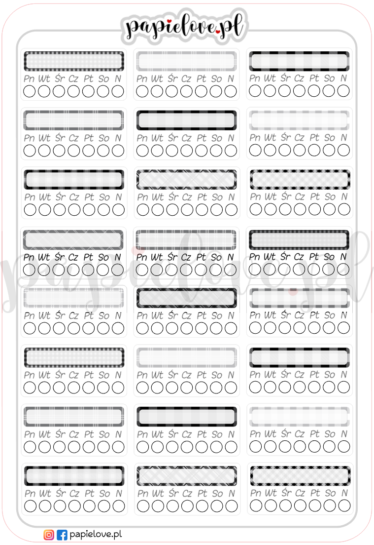 Tracker to narzędzie, dzięki któremu możesz śledzić swoje postępy w rozwijaniu pozytywnych nawyków, zauważać wzorce w swoim zachowaniu, motywować się do kontynuowania praktyk oraz identyfikować obszary do poprawy. Jest to również przydatne narzędzie do budowania dyscypliny i regularności w wykonywaniu codziennych czynności. Nasz arkusz naklejek pozwala samodzielnie wybrać i wpisać w odpowiednie pola nawyki i zwyczaje, które chcesz monitorować. Każdego dnia wypełniaj puste pola znaczkami lub zamalowuj kolorowymi kredkami. Systematyczność jest bardzo ważna.