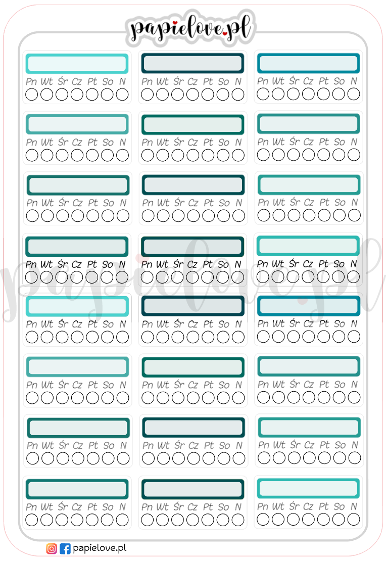 Tracker to narzędzie, dzięki któremu możesz śledzić swoje postępy w rozwijaniu pozytywnych nawyków, zauważać wzorce w swoim zachowaniu, motywować się do kontynuowania praktyk oraz identyfikować obszary do poprawy. Jest to również przydatne narzędzie do budowania dyscypliny i regularności w wykonywaniu codziennych czynności. Nasz arkusz naklejek pozwala samodzielnie wybrać i wpisać w odpowiednie pola nawyki i zwyczaje, które chcesz monitorować. Każdego dnia wypełniaj puste pola znaczkami lub zamalowuj kolorowymi kredkami. Systematyczność jest bardzo ważna.