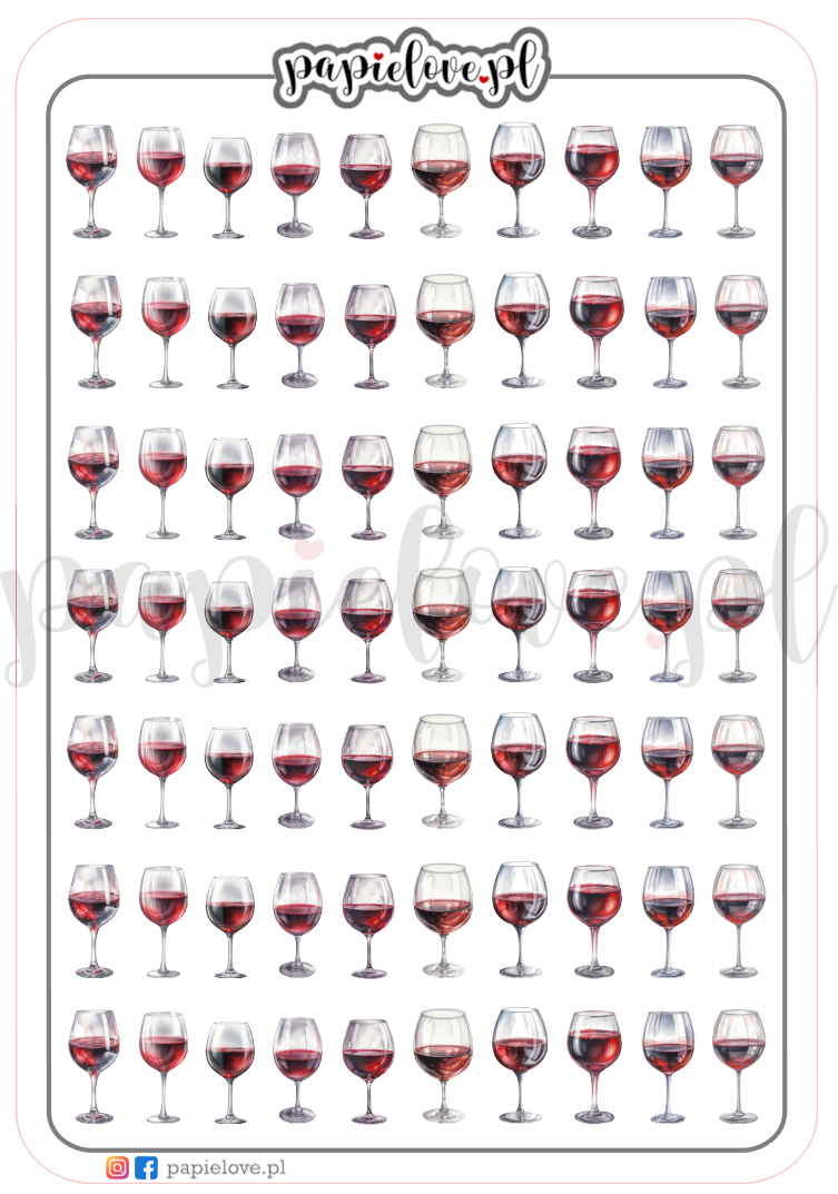 70 naklejek z kieliszkami czerwonego wina.