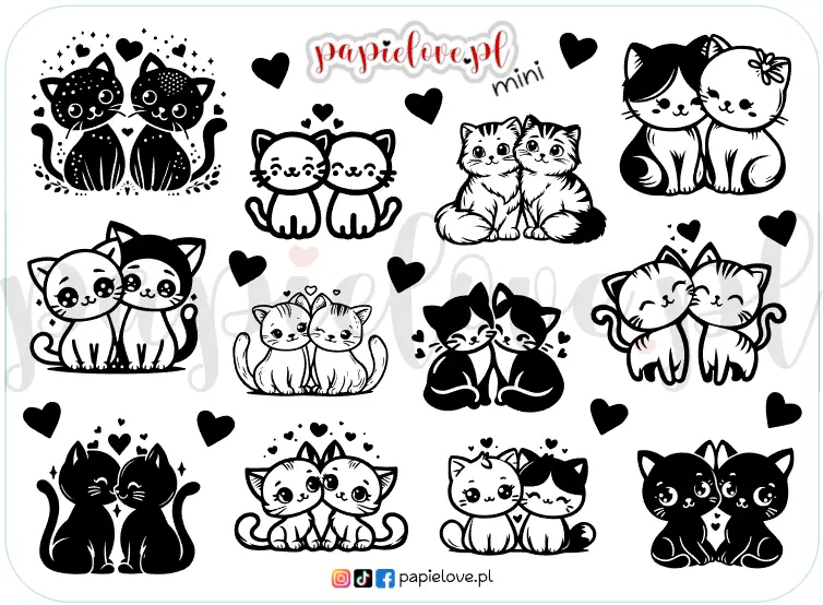 12 naklejek z kotkami oraz serduszka do ozdoby.