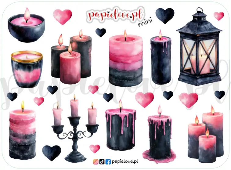 z motywem różowo-czarnych świec oraz serduszka do ozdoby.