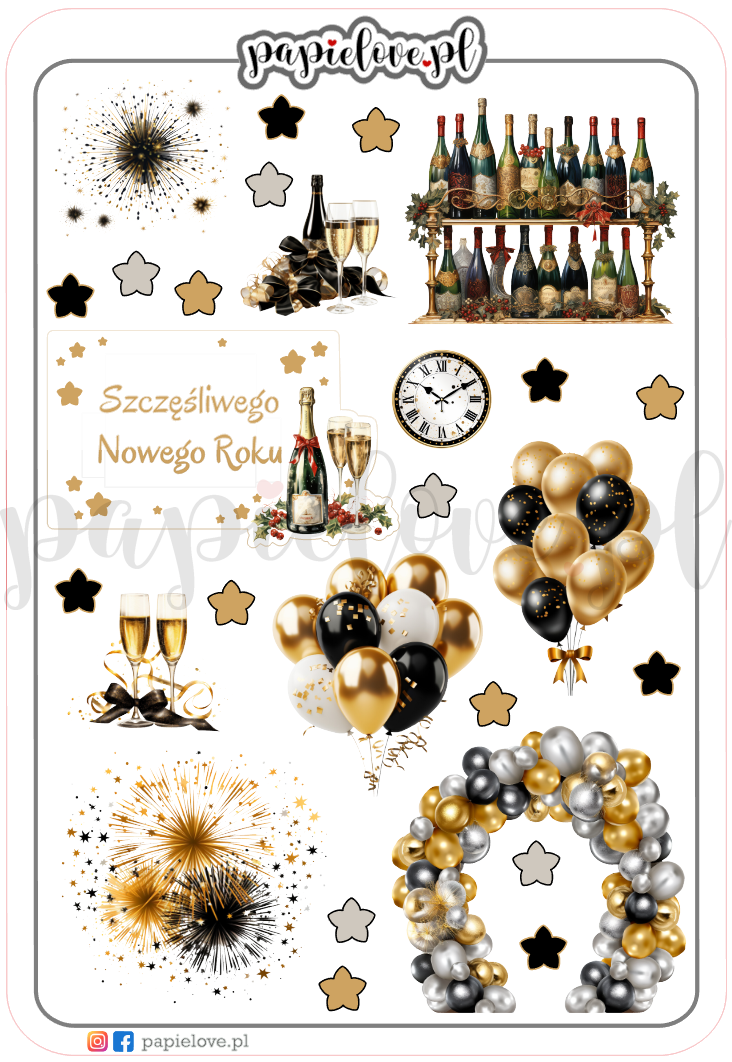 Sylwester to jedno z najbardziej wyczekiwanych wydarzeń w roku, ponieważ łączy w sobie radość, nadzieję i celebrację. Sylwester daje nam okazję, by podsumować minione 12 miesięcy – docenić sukcesy, wyciągnąć lekcje z porażek i zamknąć trudne momenty. To jak symboliczne "resetowanie" życia. Nowy Rok to obietnica nowych szans, celów i możliwości. Świętowanie Sylwestra przypomina nam, że każdy koniec jest początkiem czegoś nowego. Dodaj sylwestrowy blask do swoich projektów dzięki naszym naklejkom.