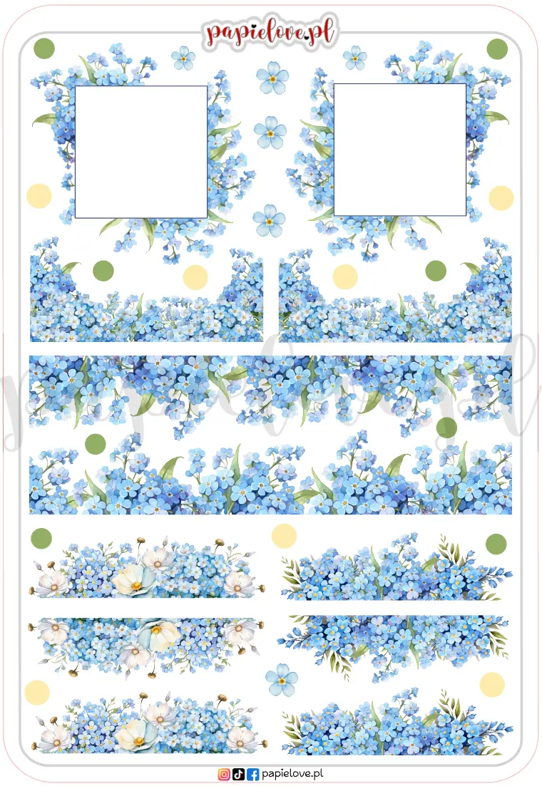 Zakochaj się w uroczych naklejkach z niezapominajkami. Arkusze naklejek z niezapominajkami to subtelna dekoracja inspirowana naturą. Delikatne, błękitne kwiaty dodadzą romantycznego uroku Twoim planerom, notesom i prezentom. To idealne naklejki dla miłośników natury, journalingu i scrapbookingu, estetycznych dodatków i subtelnych dekoracji. Nie czekaj i wybierz swoje naklejki z niezapominajkami już teraz aby stworzyć coś wyjątkowego.